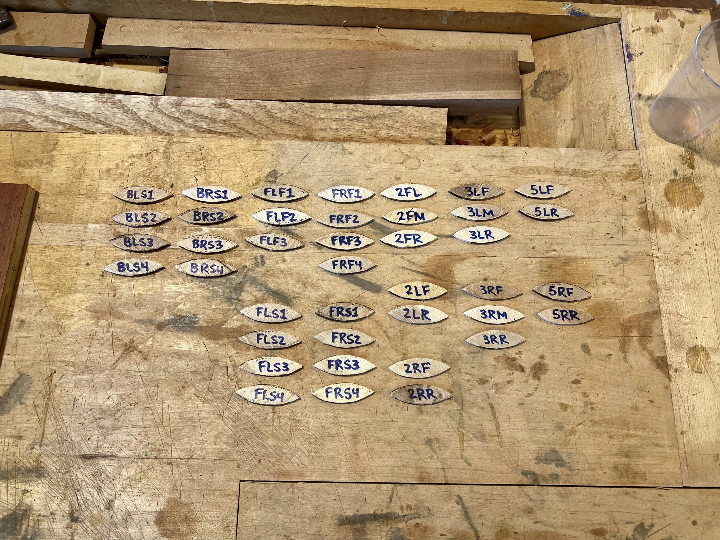 Because of this, I labeled all of my biscuits and the holes that they would go into before gluing the cabinet together, so that I knew that each biscuit had been tested. Since the gluing process is time-sensitive, I wanted to know that everything was in order before I started gluing and not have to fumble for a biscuit that would work while the glue began to set.
