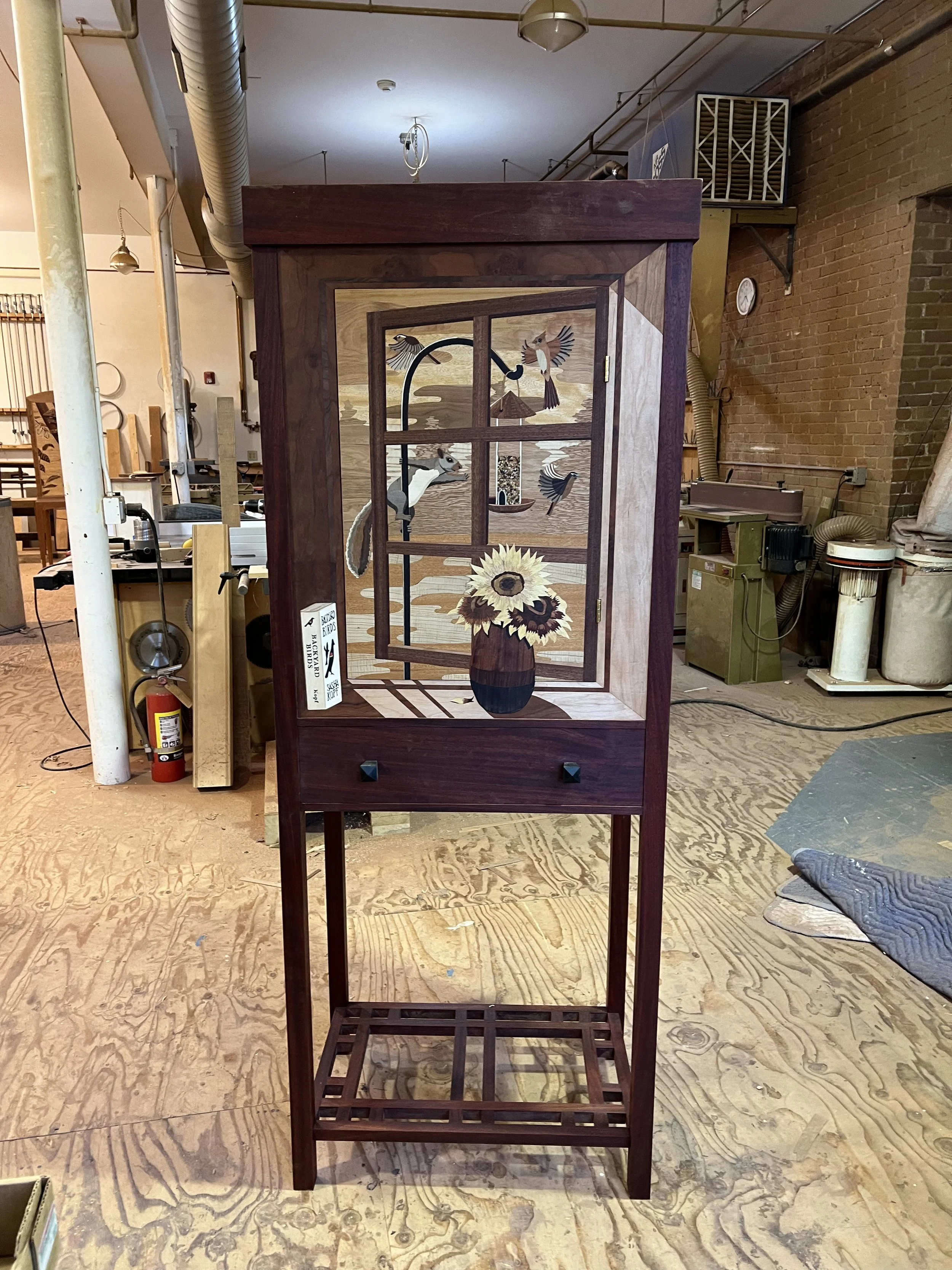 To finish the cabinet, I applied six coats of tung oil to most of the surfaces, using the same process that I did for the first coat. I added a new coat of oil every day. The more oil I put on, the richer and darker the colors became.